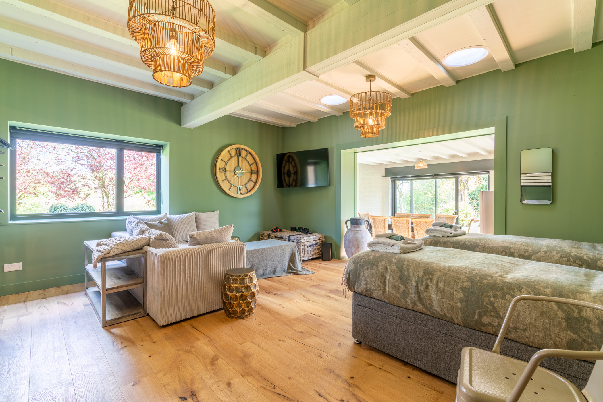 Room 5 showing twins and view out past seating area -